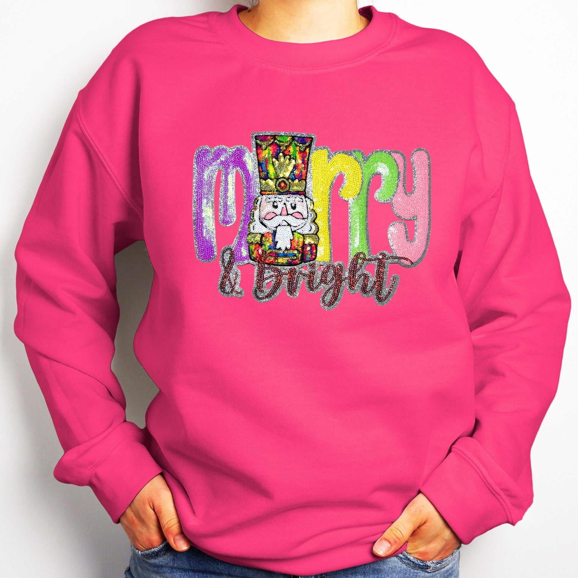 Spread the joy and sparkle this season with a sweatshirt that truly says it all — Merry and Bright!